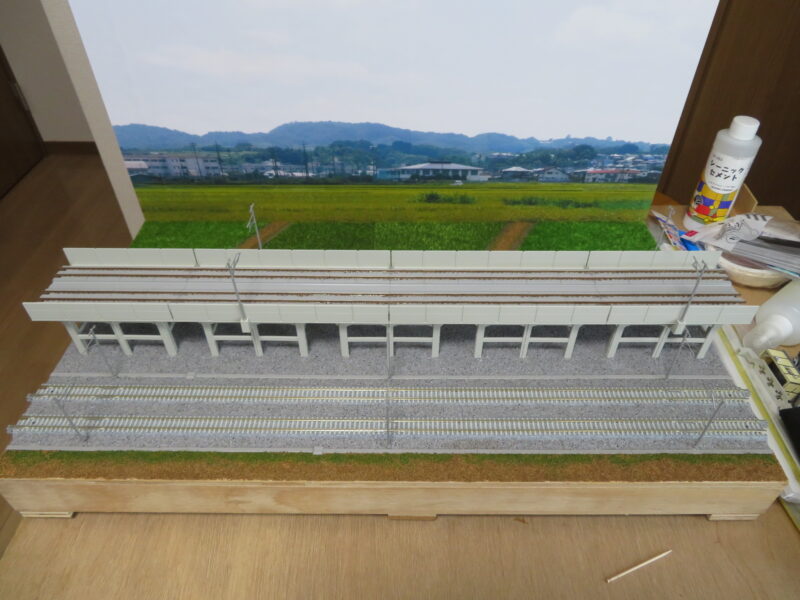 【ジオラマ】T-TRAK北陸本線風モジュールの製作その9(田んぼの製作と小物の設置)