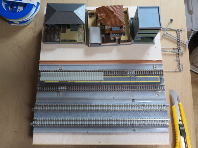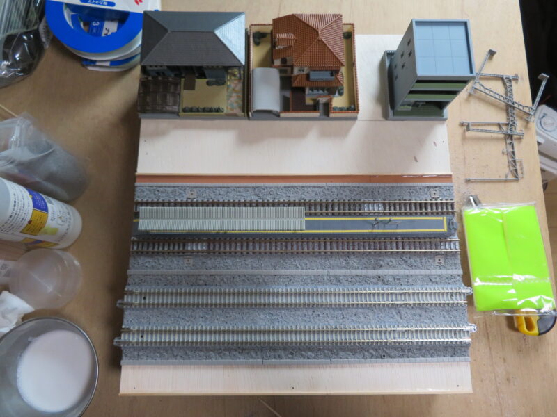 【ジオラマ】T-TRAK無人駅と住宅地モジュールの製作③(バラストの散布)