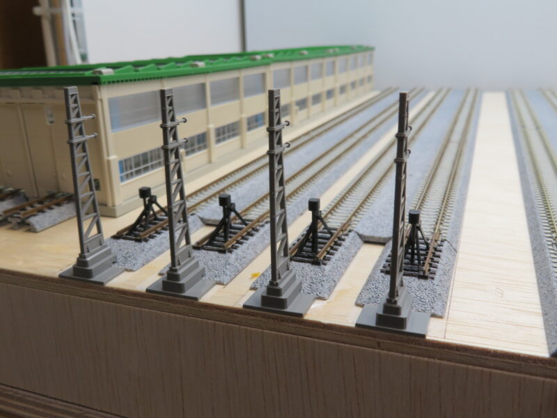 以前製作した操車場モジュールは、風景に変化をつけようと留置線の1線だけ中途半端に車止めを設置したのだけれど、それが撮影の邪魔になるという失敗をしていて、結局納得いかないので改良することに。