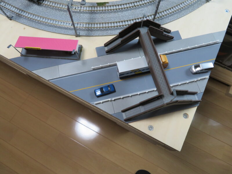 この型紙をもとに道路を製作して両面テープで貼り付け。
