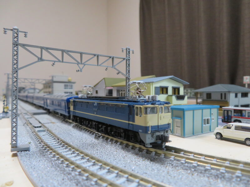 架線柱が邪魔だけど仕方ないかなぁ…。ちなみに一応10両までは写真に入る感じ。