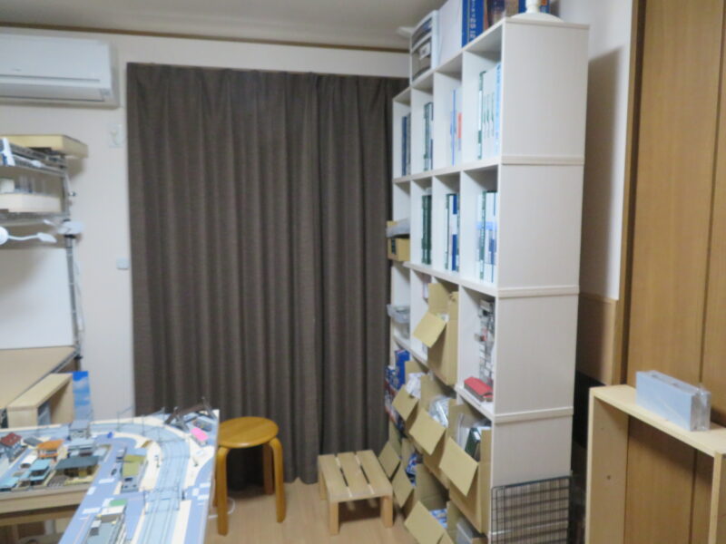 【模型部屋を作るその12】模様替え②公開済み: 2025年10月25日更新: 2025年10月25日作成者: kowカテゴリー: DIY, 模型部屋を作る前回の続きで、本棚と奥の茶色いカーテンを白く隠すために背景用の白い布と突っ張り棒とフックを購入。右側の本棚の上に両面テープでフックを貼り付けて… 突っ張り棒をかける 背景用の布の、袋縫いされている、本来なら背景スタンドのポールを差し込む部分に突っ張り棒を差し込み、フック付きの洗濯バサミで本棚につけた突っ張り棒とカーテンレールに引っ掛ける。本棚の上のほうに隙間が空いてるのが気になったけど、実際にZOOMで確認するとそんなに気にならず。まあ常にこの状態にするわけではないからいいかな。共有: Facebook で共有するにはクリックしてください (新しいウィンドウで開きます) Facebook クリックして X で共有 (新しいウィンドウで開きます) X いいね:いいね 読み込み中…この投稿へのコメントコメントはありません。コメントを残す コメントをキャンセルメールアドレスが公開されることはありません。 ※ が付いている欄は必須項目ですコメント ※名前 ※ メール ※ サイト 次回のコメントで使用するためブラウザーに自分の名前、メールアドレス、サイトを保存する。 Δこの投稿へのトラックバックトラックバックはありません。トラックバック URL