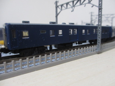 実車は保護棒が撤去されてたらしいのでどうするかというと、TOMIXで一時期発売されてた、保護棒がモールドされてないエラー品を入手してたので、その車体ごと換装することに。実はTOMIXのほうがちょっとだけ長いのだ。でなければできない荒業だが…。