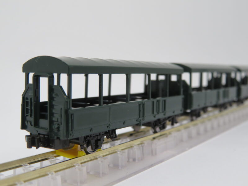組み立て自体は3両で1時間もかからず終了。カプラーは2軸貨車用ナックルカプラーに換装している。