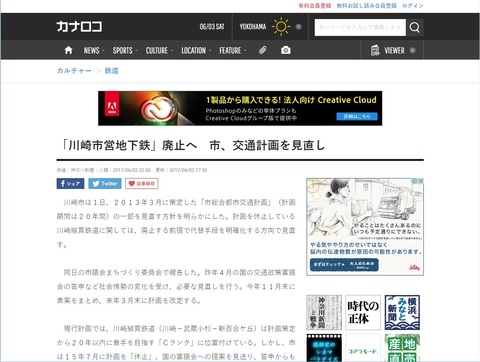 カナロコ・神奈川新聞:「川崎市営地下鉄」廃止へ 市、交通計画を見直し