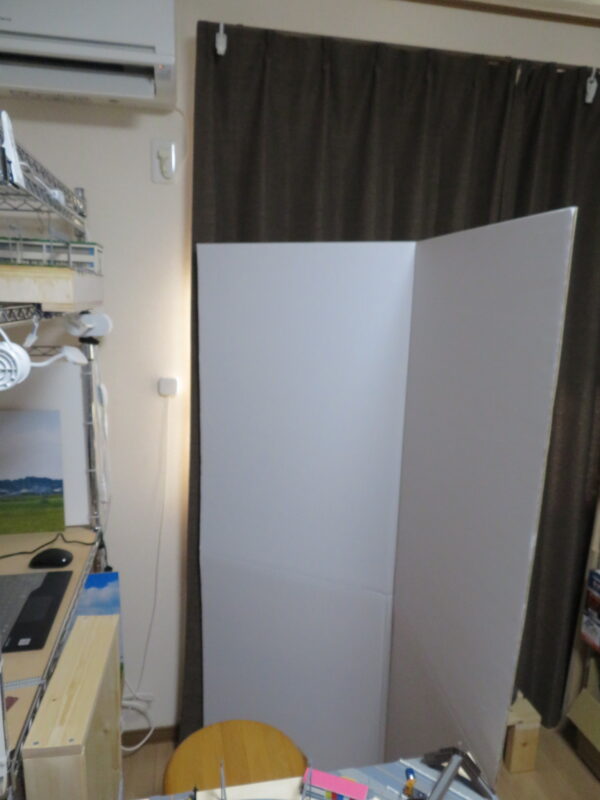 この時はこれで問題ないと思ったのだけれど、別のオンライン会議でTeamsを使用することになって、それで確認すると画角の違いからか思ったより広く映ることが判明して、椅子の真後ろに背景を持ってこれれば何とかなりそうだと判断して表題の背景・間仕切り用パーテーションを購入。